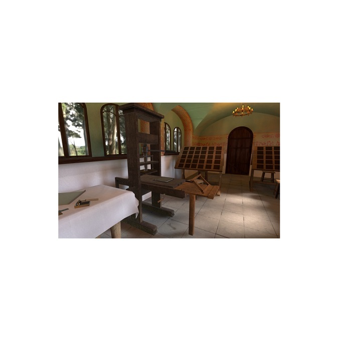 Действие происходит в Московском печатном дворе во времена правления Ивана Грозного. В симуляции находится подлинное убранство печатного двора и множество инструментов для печати, такие как: деревянный печатный станок, набор литер, чернильница, стопки бумаги и многое другое. Пользователю предстоит погрузиться в увлекательный процесс книгопечатания и познакомиться с историей этого уникального ремесла.