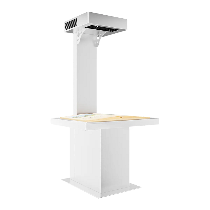 Проекционная книга является оригинальным решением для передачи информации, которая подходит не только для музеев, но и для других организаций. Например, ее часто используют на выставочных стендах. Специализированный датчик в проекционной книге позволяет при перелистывании страниц считывать на какой странице находится пользователь и, предоставлять контент, запрограммированный конкретно на эту страницу. К данному решению предоставляется возможность добавления шума перелистывания страниц, а также системы администрирования, которая позволит самостоятельно менять информацию, транслируемую пользователю. Проекционная книга позволяет добавлять не только текст, но и фото-, видеоматериалы. Помимо этого, возможна кастомизация обложки страницы, согласно брендбуку вашей компании.